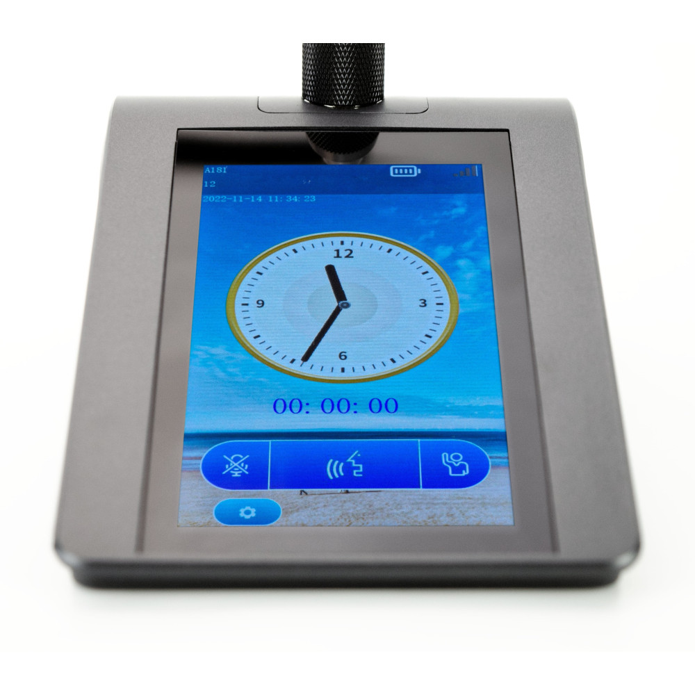 Микрофонный пульт председателя CleverMic MU2205C представляет собой многофункциональное устройство, спроектированное для эффективных конференций и мероприятий. Этот микрофонный пульт оснащен 5,0-дюймовым полноцветным IPS-дисплеем высокой четкости, который отображает информацию о громкости, состоянии микрофона, времени и дате, уровне сигнала и заряде батареи.