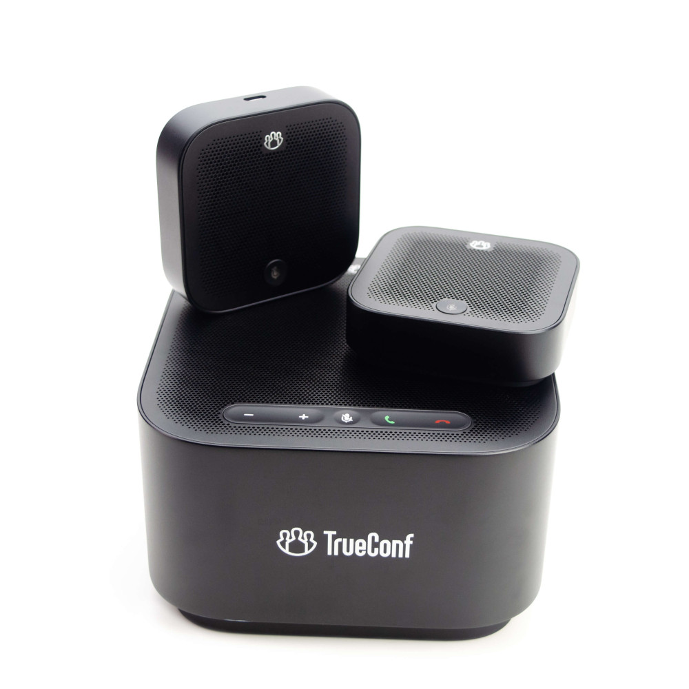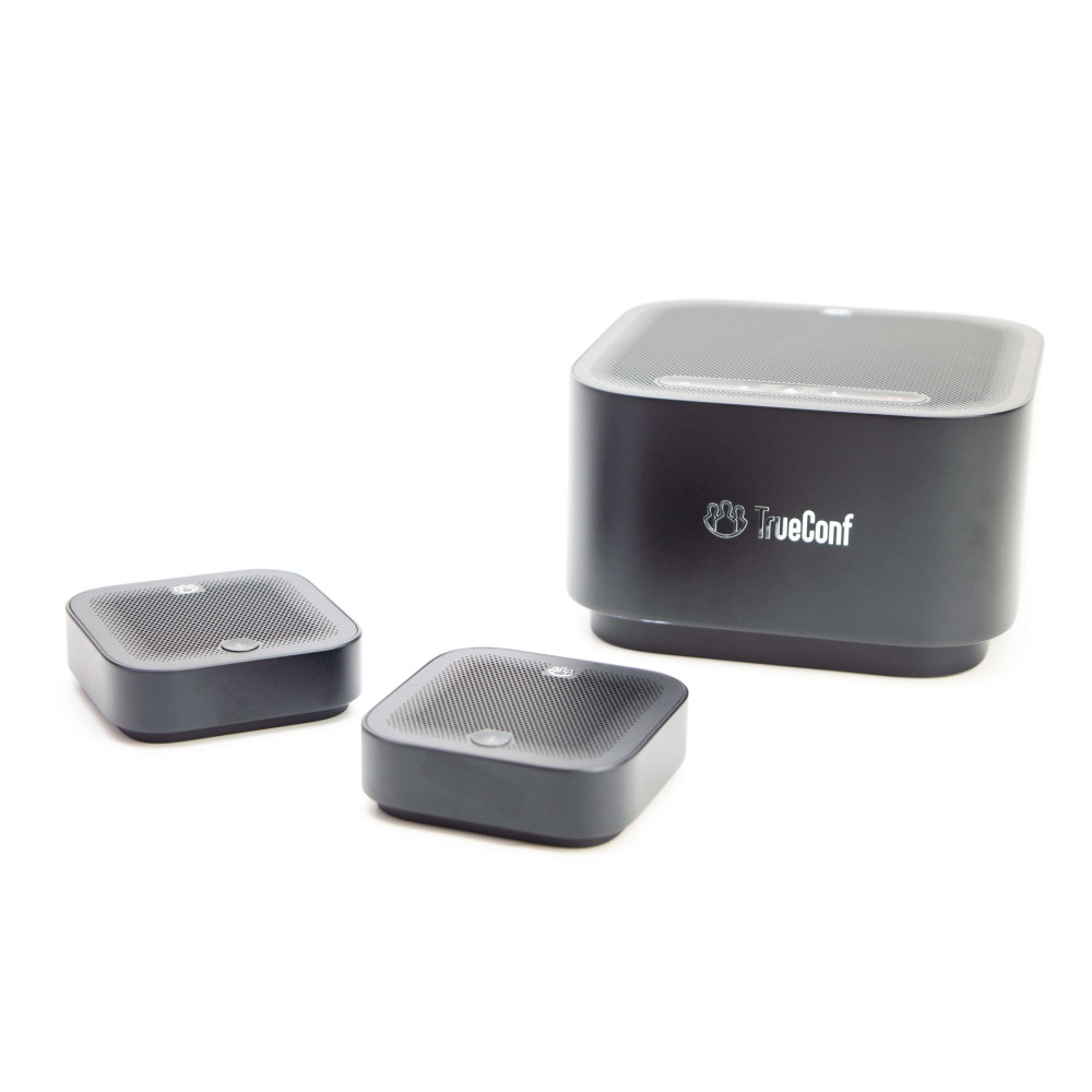 TrueConf Audio Trio создан с учетом разнообразных сценариев использования. Благодаря тому что в состав комплекта входит основной спикерфон и два дополнительных микрофона есть возможность адаптировать спикерфон для использования в малых, средних и больших конференц-залах.